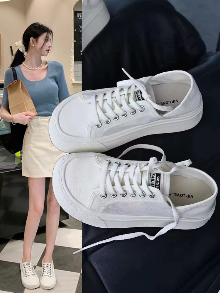 Hong Kong Thick-Soled Mango Toe Mesh Panel Shoes for Women 2025 Summer Versatile Sports Casual Shoes Height-Increasing Lace-Up White Shoes
