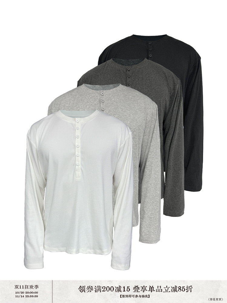 Jcaesar Henry Sleeve Henry Collar Long Sleeves, Soft, Comfortable, Versatile, Flattering, Available in Multiple Colors