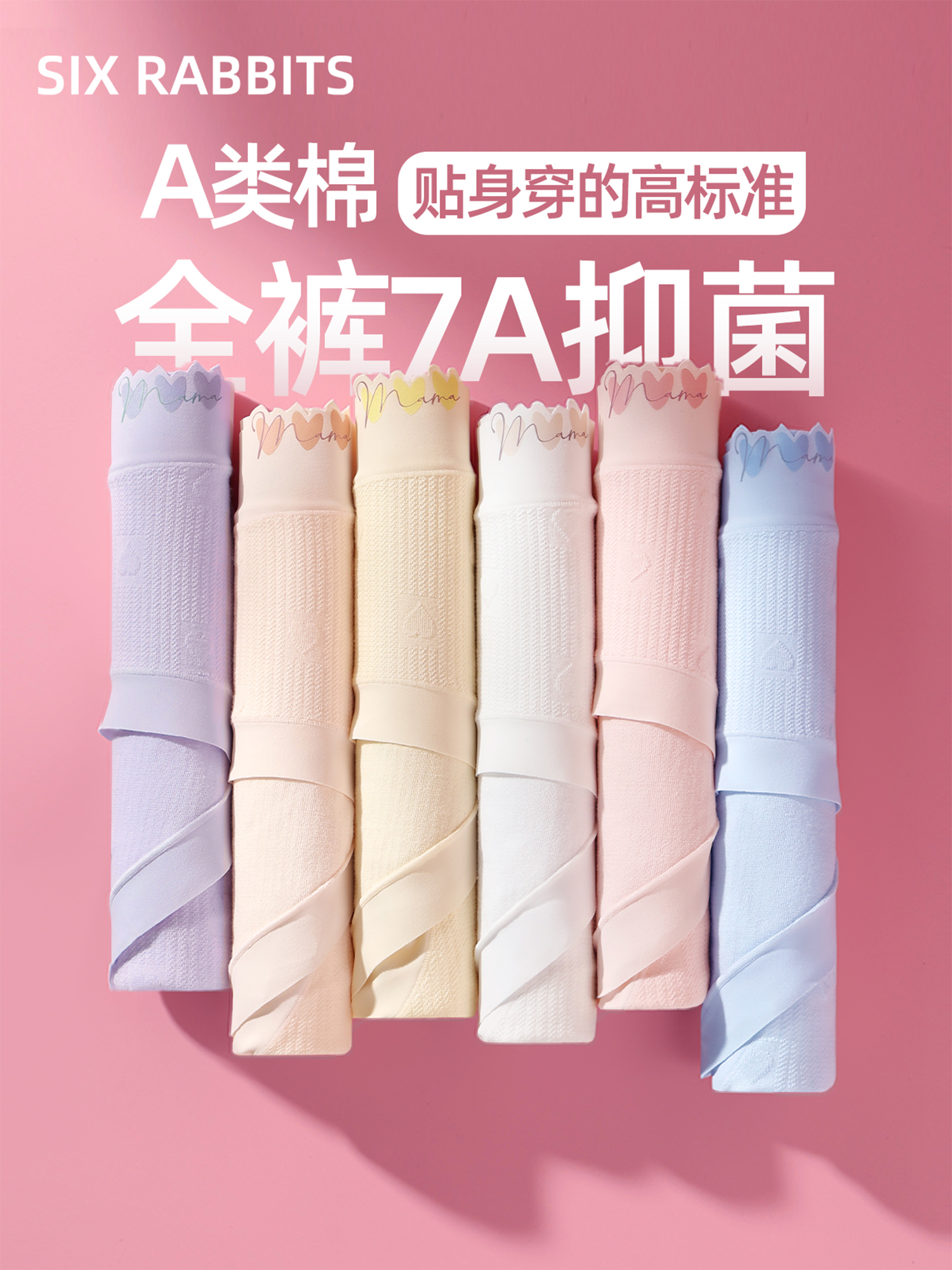 Six Rabbits 3-Pack Women's Underwear, Class a Baby Cotton, 7A Antibacterial Pure Cotton Crotch, Breathable Full-Coverage Hip Briefs