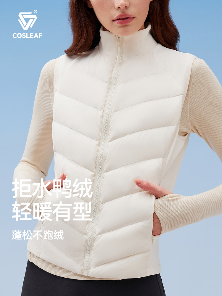 Coreyf down Jacket Vest Winter Ribbed Duck down Windproof Warm Stand Collar Running Slim Fit Stylish Sports Top