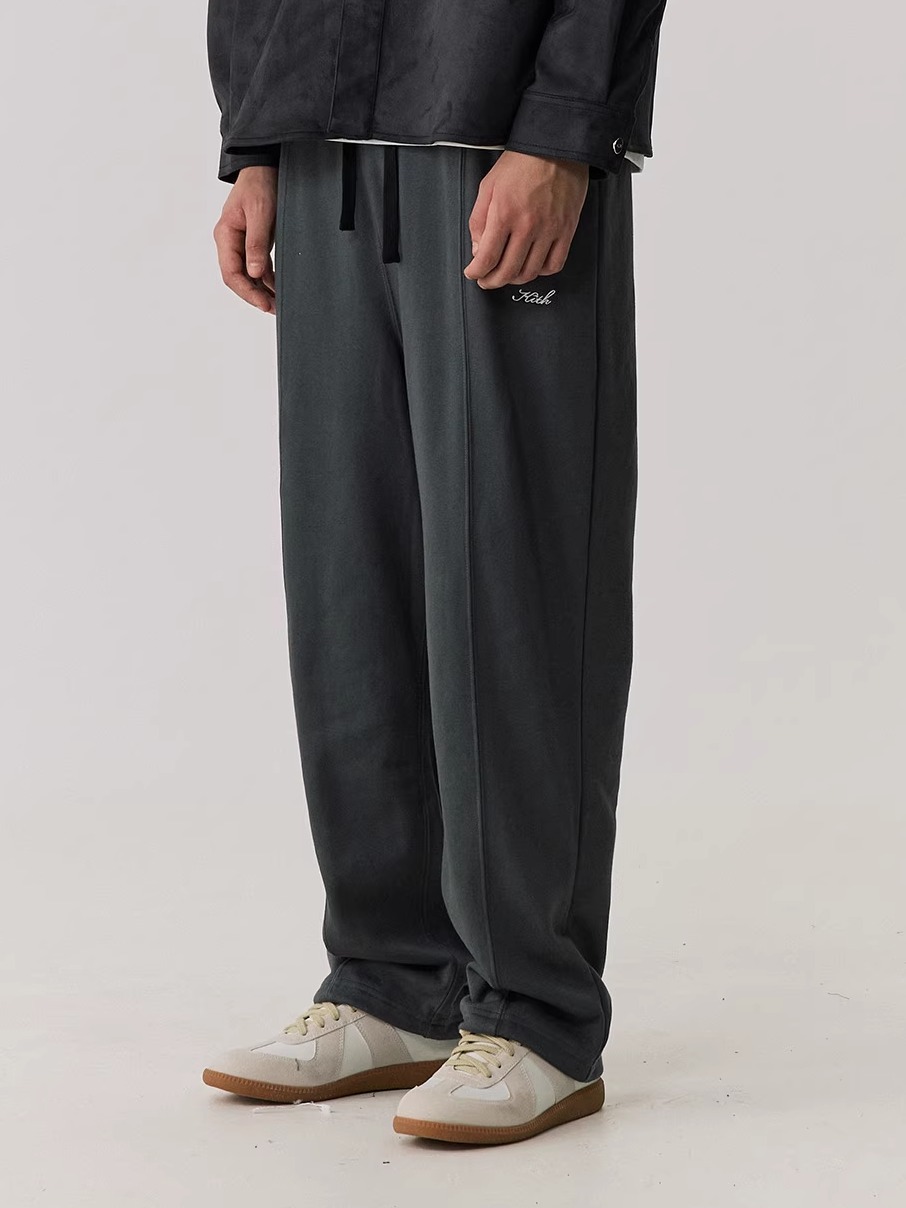 Kith Men's Trendy Embroidered Sweatpants 2024 Autumn New Loose Straight-Leg Pants Jogger Long Pants Gray Sports Pants