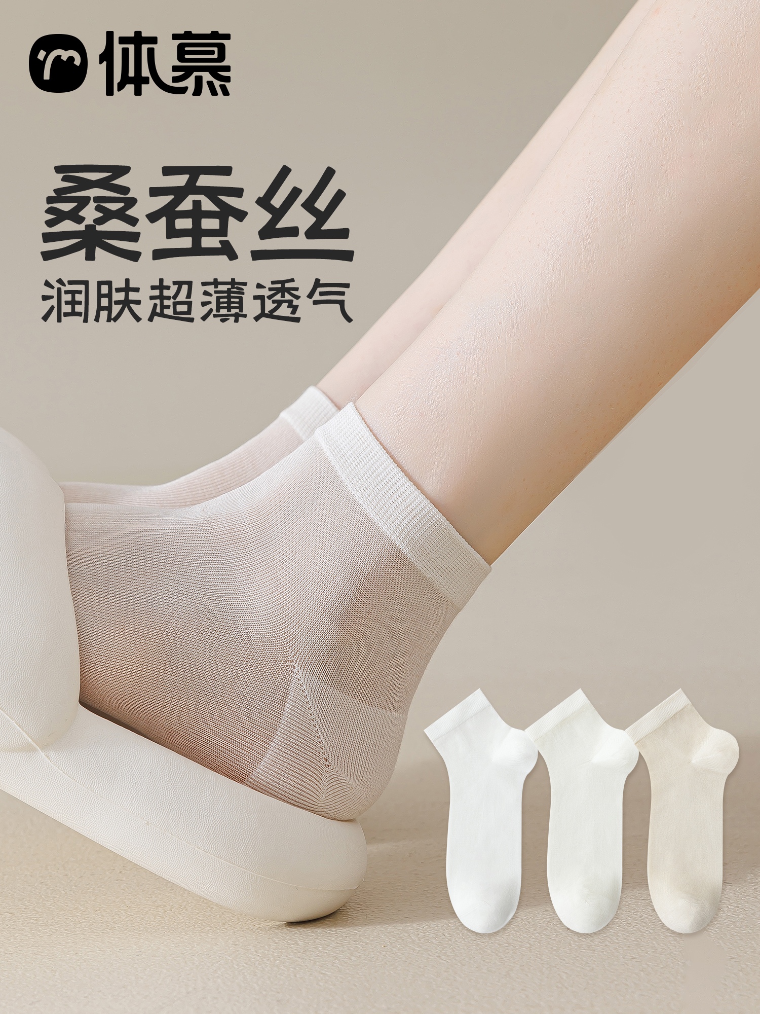 Silk Socks for Women, Summer Thin Short Socks, Sweat-Absorbent and Breathable, Women's Spring and Autumn Anti-Odor Socks, Summer Antibacterial Mid-Calf Socks