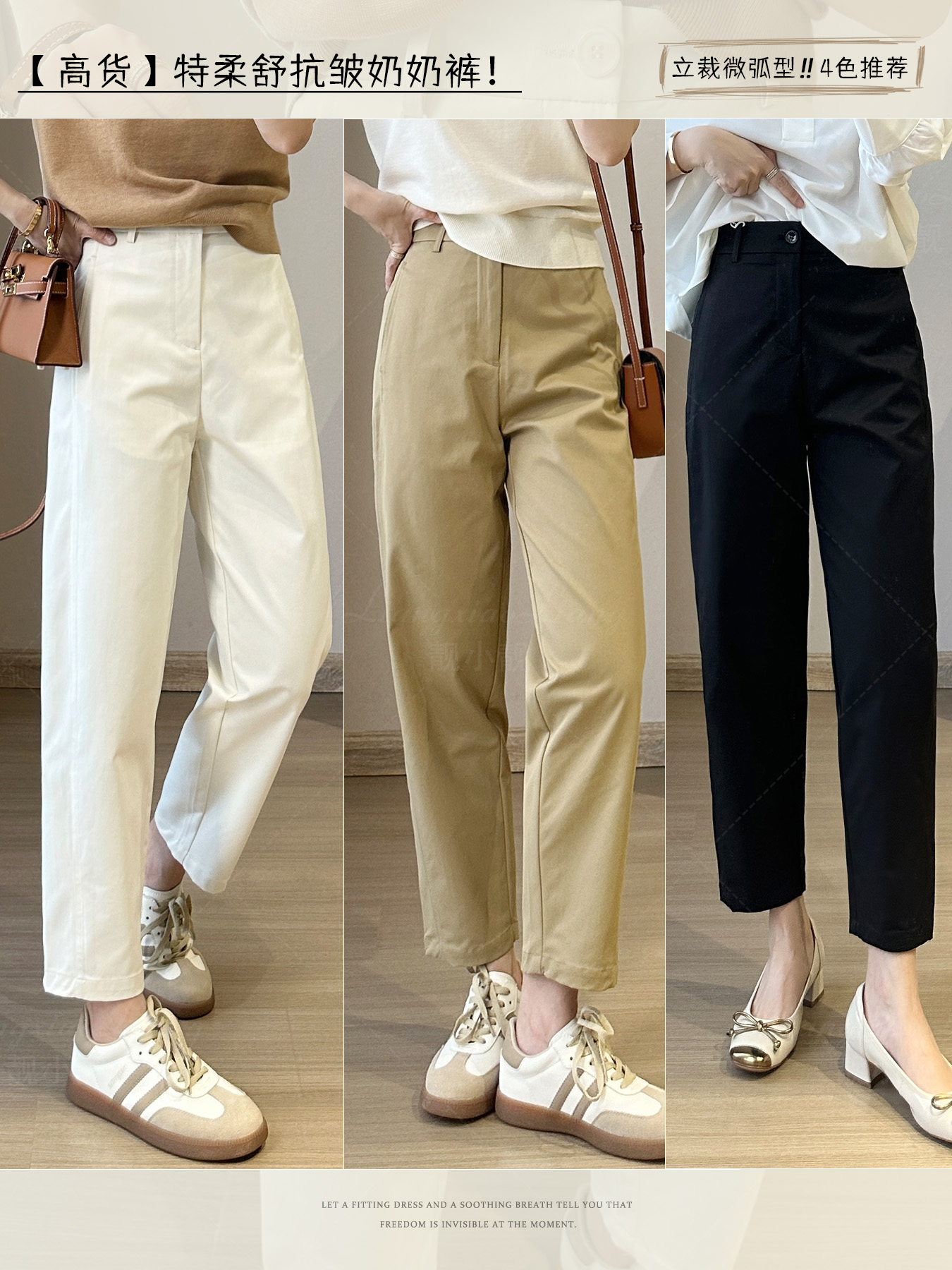 Beautiful Little Beauty [High-Quality] Extra Soft and Comfortable Anti-Wrinkle Granny Pants, Elegant Commuting Tailored Slightly Curved Nine-Point Pants, No-Iron Women's Pants
