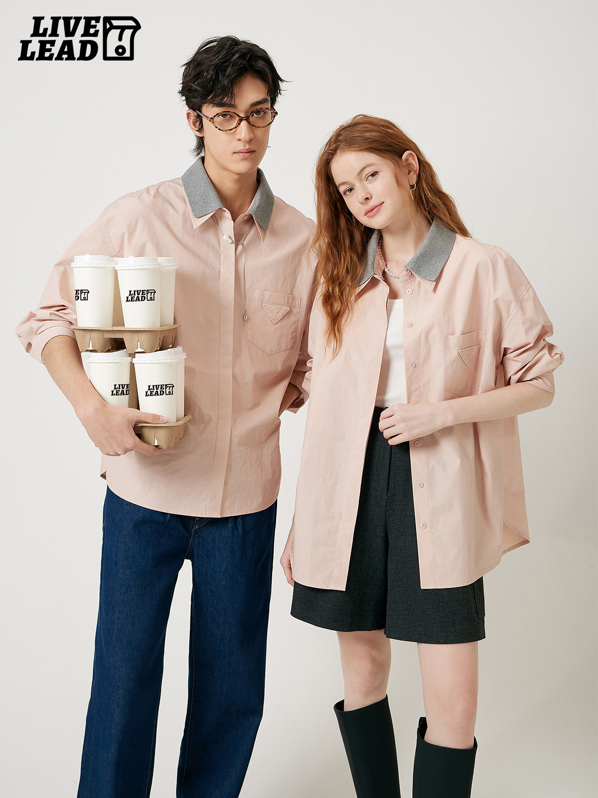 Livetolead Design Sense Color-Block Pink Shirt Women's Autumn Long-Sleeve Sun Protection Shirt Casual Loose Pure Cotton Top