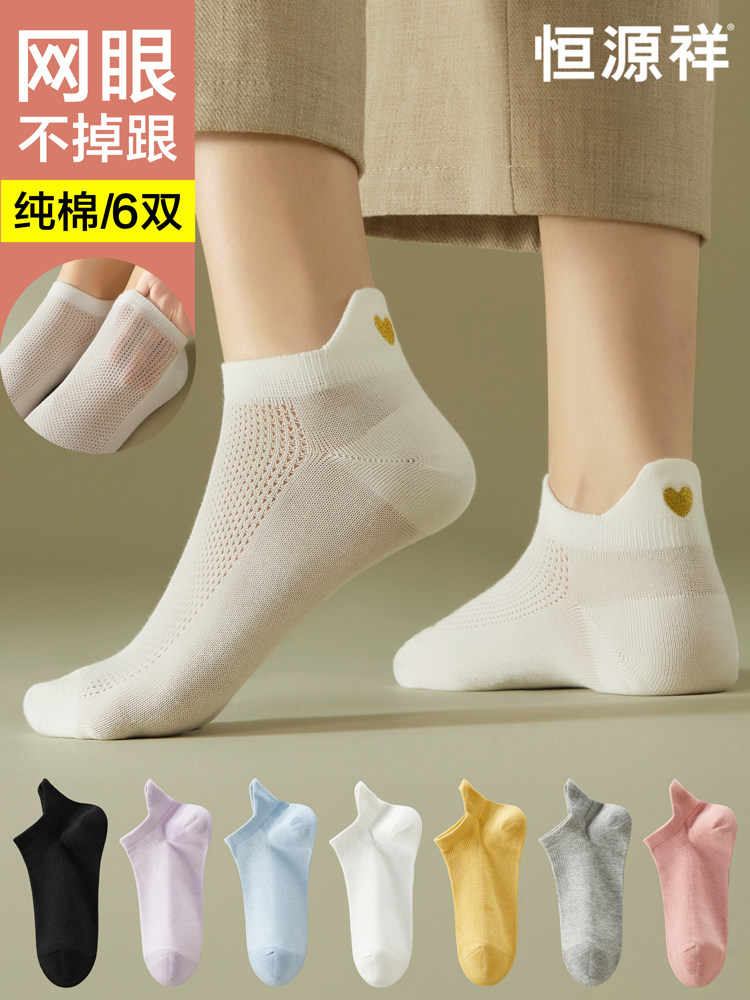 Hengyuanxiang Women's Short Socks, Pure Cotton, Antibacterial, Mesh, Breathable, Spring and Autumn, Odor-Resistant, Invisible, Non-Slip, No-Show Socks