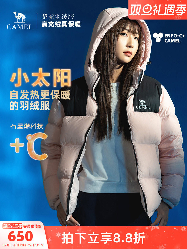 Camel Little Sun Outdoor down Jacket Winter New Style Women's and Men's Thickened Warm Water-Repellent Windproof Puffer Jacket