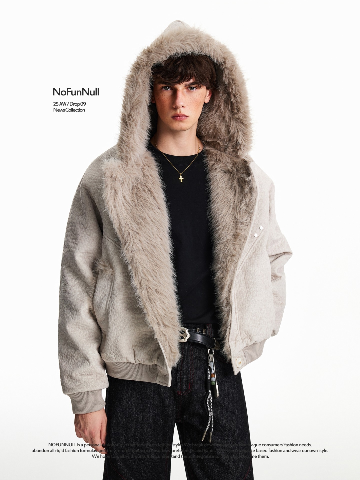 700g Faux Rabbit Fur Heavy Cloud Velvet Short Wide-Seat Mountain Carving Cotton Jacket for Men, Autumn and Winter, Fleece-Lined, Thickened, Embroidered Hooded Coat