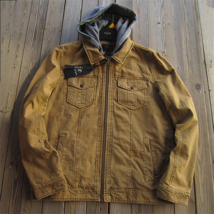 Original Foreign Trade Men's Workwear Multi-Pocket Canvas Cotton Jacket, Vintage Craftsmanship, Detachable Hood, Complete Product