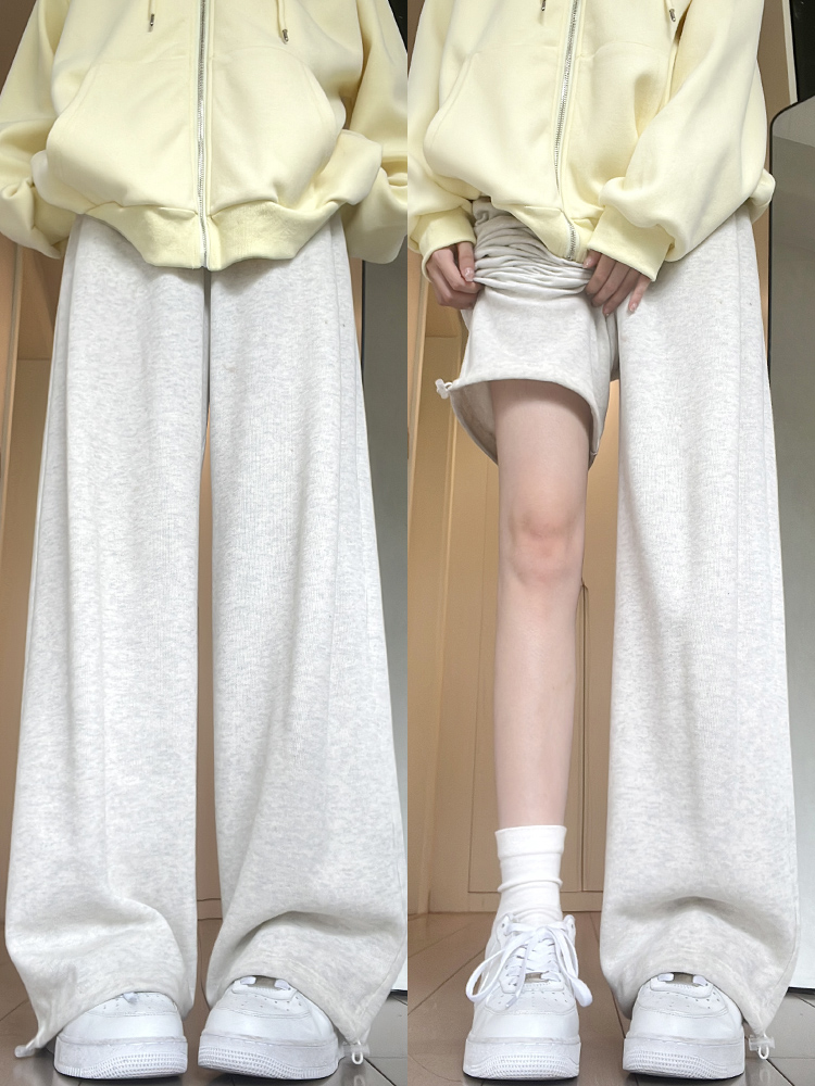 Navy Blue Wide-Leg Pants for Women 2025 New Summer Petite Straight Narrow Version Slimming Drapey Sports Patchwork Sweatpants