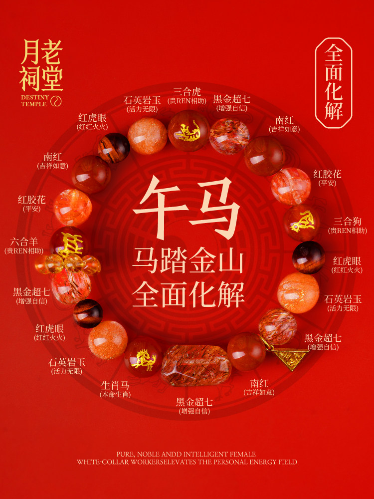 Year of the Horse Zodiac Bracelet 2026 Southern Red Twelve Zodiac Beads Bracelet for Men and Women, Fortune Crystal Three Harmonies and Six Harmonies Gift