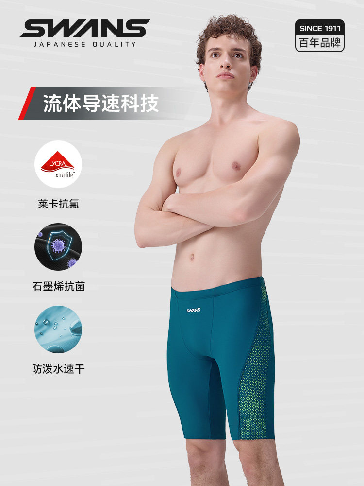 Swans Men's Swimming Trunks, Anti-Embarrassment, Quick-Drying, Chlorine-Resistant, Adult Five-Point Racing Professional Training New Swimming Equipment