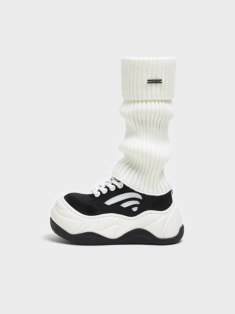 [Same Style as Wang Yiyao] Fangyuan Diary Fyspr Black Platform Thick-Soled Height-Increasing Large-Toe Wave-Pattern Loafers