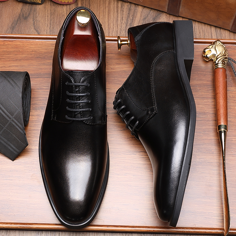 Playboy Men's Shoes, Spring and Autumn British Style Business Formal Leather Shoes, New Soft Leather Height-Increasing Wedding Groom Shoes