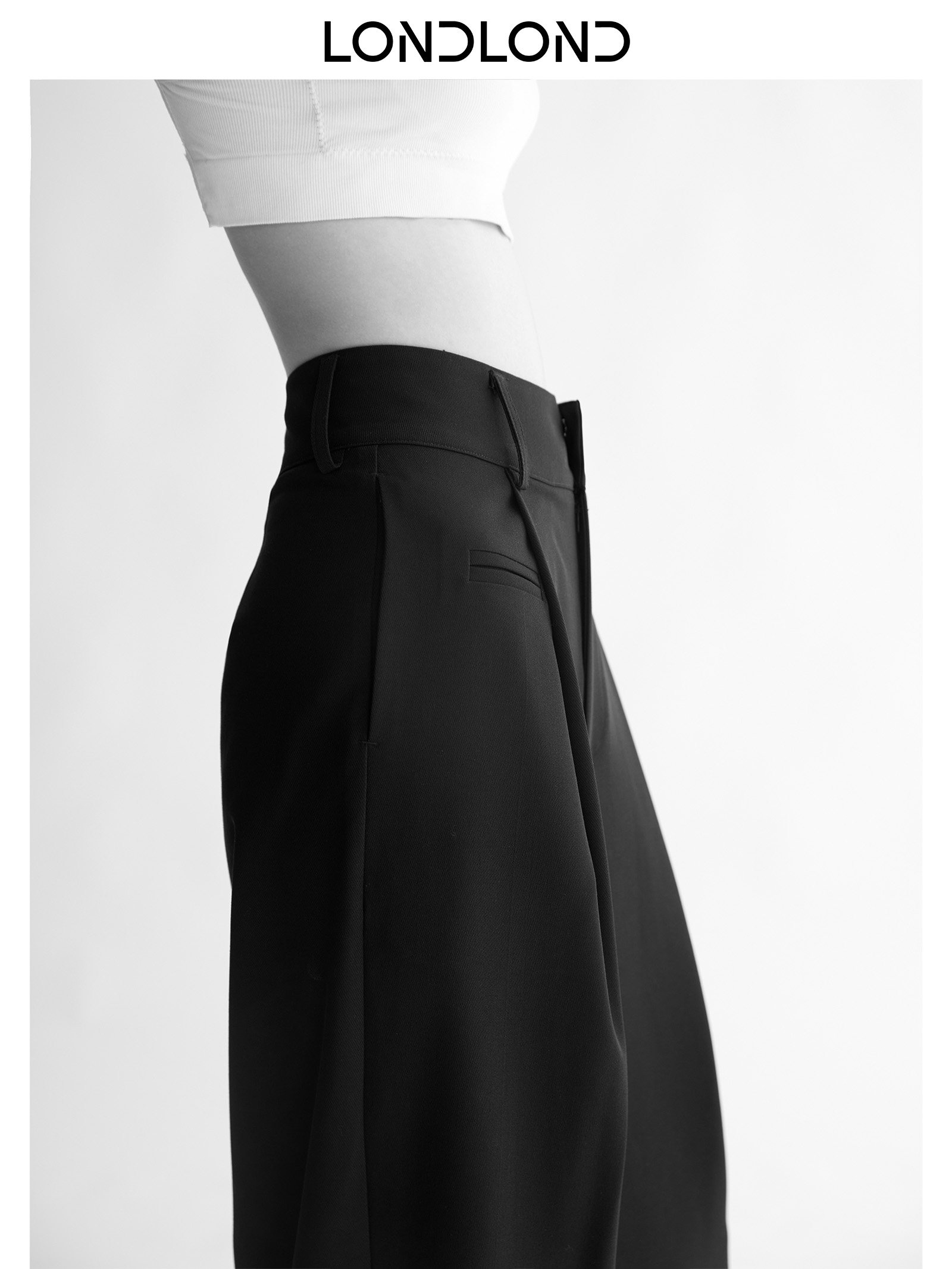 Londlond 2026 Suit Pocket Design Casual Black Suit Pants High-Waisted Slimming Wide-Leg Suit Pants