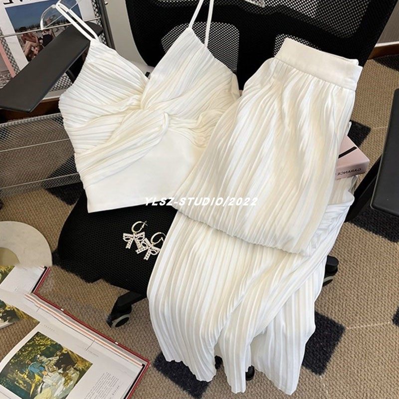 First-Line Big Brand Export Goods Export Cut Label Withdrawal Wide-Leg Pants Suspenders Two-Piece Set White Pleated Suit