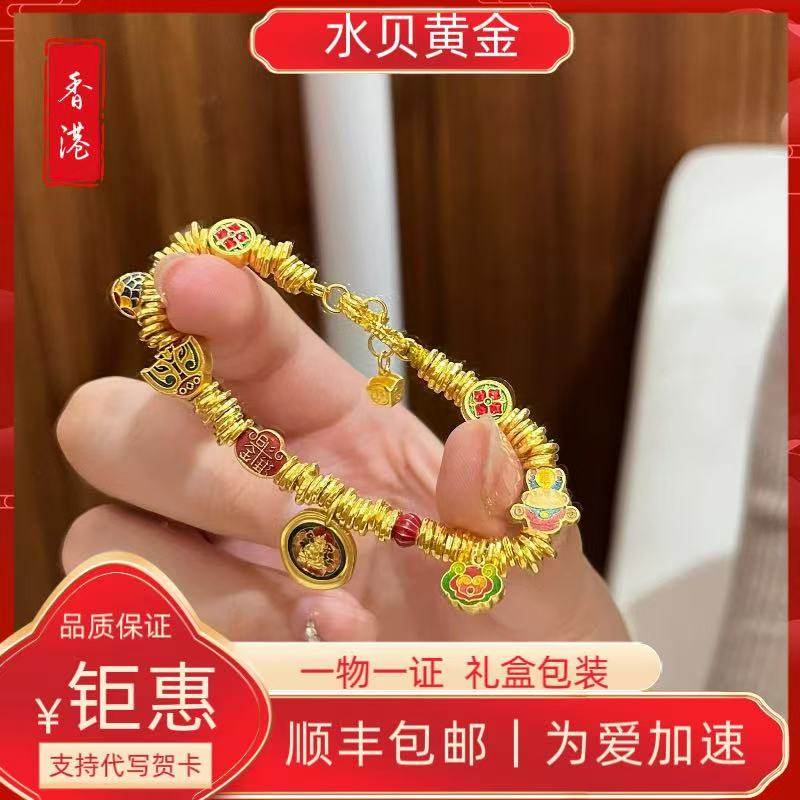 Shenzhen Shuibeijiao Gold Weixue Same Style Burnt Blue Enamel Yellow God of Wealth 999 Pure Gold Zaji Ram Coiled Bracelet