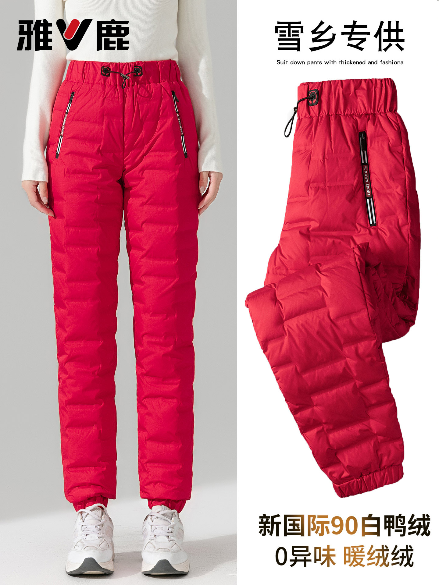 Yalu New Winter down Pants for Women, Suitable for Outdoor Wear in Harbin Snow Town, High-End Skiing, High-Waisted, Thickened, Cold-Proof Cotton Pants