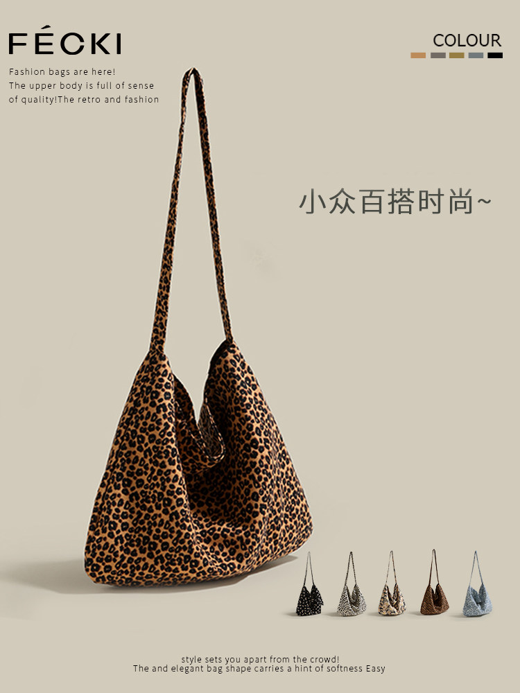 Fecki Zhang Ruonan's Leopard Print Canvas Bag for Women, Large Capacity, Korean Style, ins Super Popular, Lazy Style Tote Bag