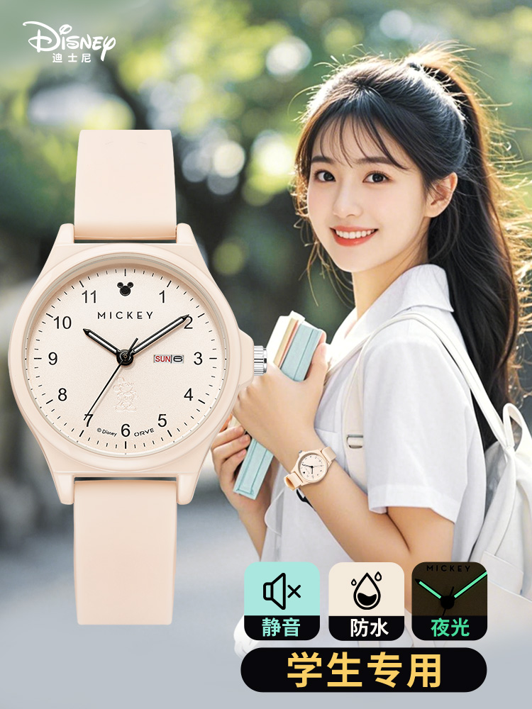Disney Watch for Female Students in Middle and High School, High Appearance Value, for Junior High School Girls, Children, Girls, Silent Electronic Watch, Special for Exams