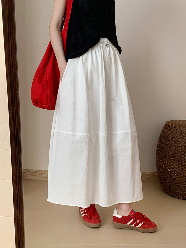 High-Waisted Anti-Wrinkle Quick-Drying Umbrella Skirt 2025 Summer New Korean Style Versatile Solid Color Ladylike Skirt