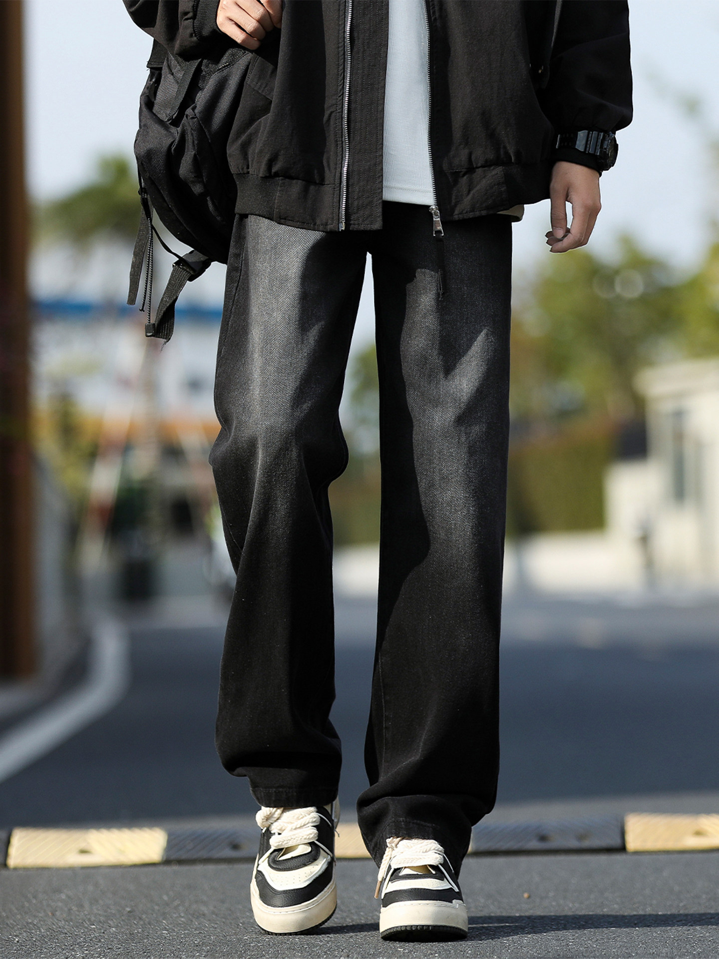 Men's Jeans, Winter Loose Straight-Leg Trousers, American Retro Wide-Leg Casual Spring and Autumn Style, Fleece-Lined Pants for Men