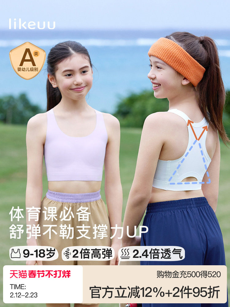 Ubras' Likeuu Girls' Size-Free Racerback Cross-Back Beautiful Back Color-Blocked Sports Bra