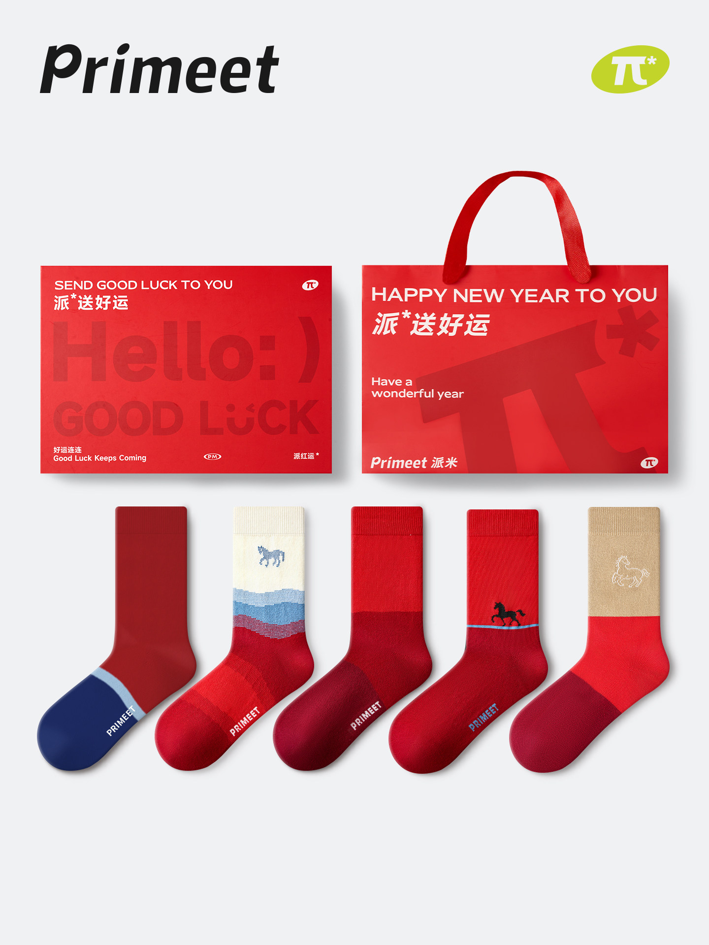 Paimi Red Socks for Men in Their Zodiac Year, Mid-Calf Socks for the Year of the Horse, New Year Autumn and Winter Cotton Socks, Gift Box Set, Long Socks