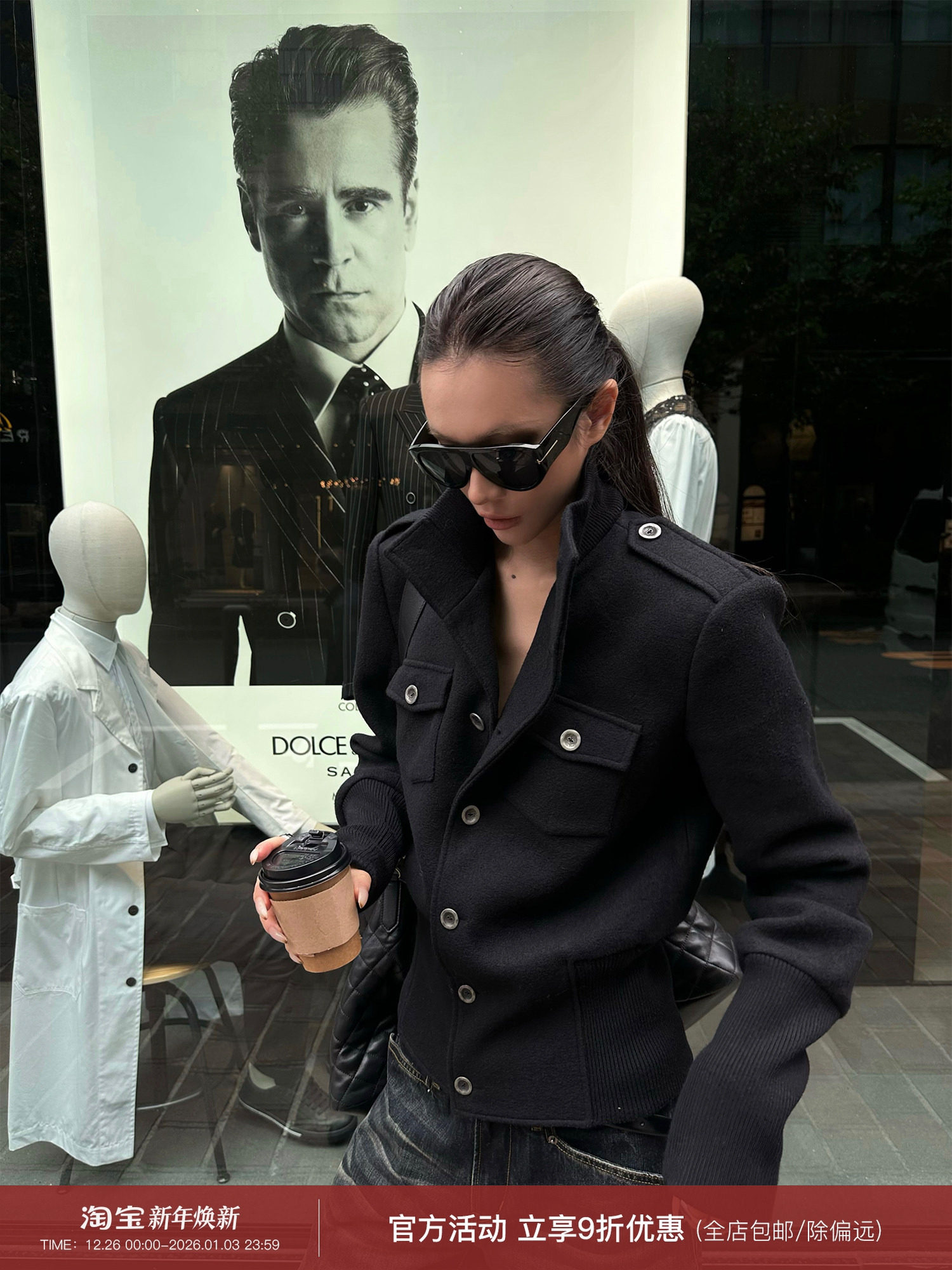 0122Stepll Modern Tokyo Black Woolen Coat for Women Vintage Waist-Cinching Stand Collar Padded Shoulder Woolen Short Jacket