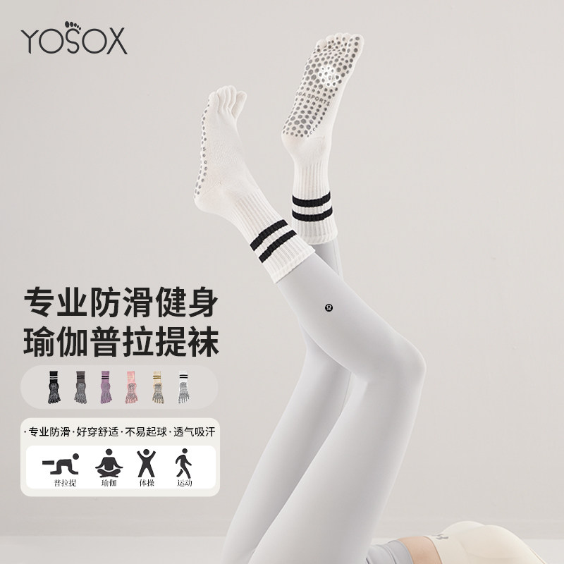 Striped Mid-Calf Pilates Socks, Five-Toe Socks, Yoga Socks, Non-Slip Professional Women's Autumn and Winter Split-Toe Sports Socks, Long Socks