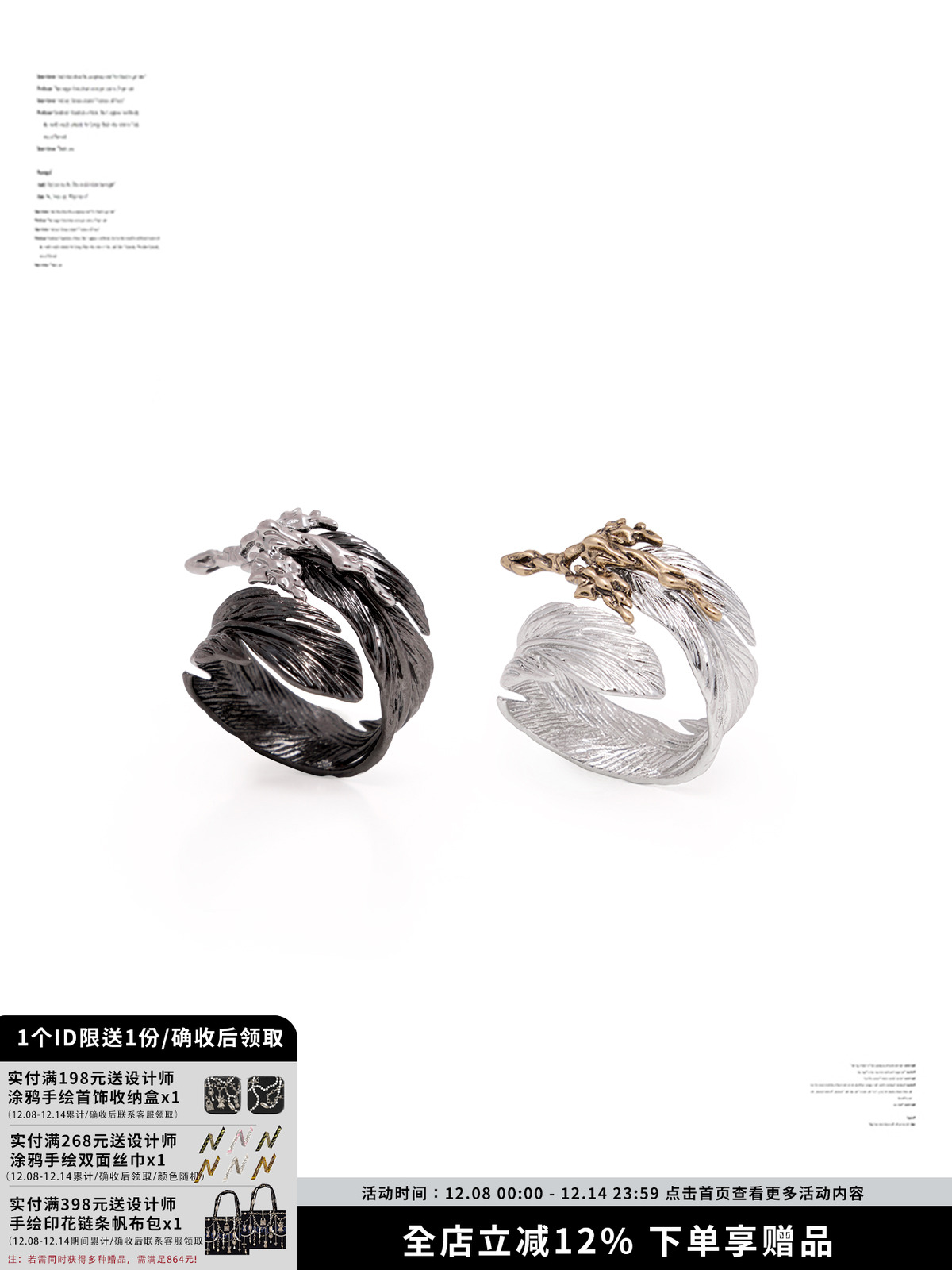 [Celebrity Style] Feather Series Niche High-End Ring for Women, Liquid Metal Light Luxury Couple Ring Gift