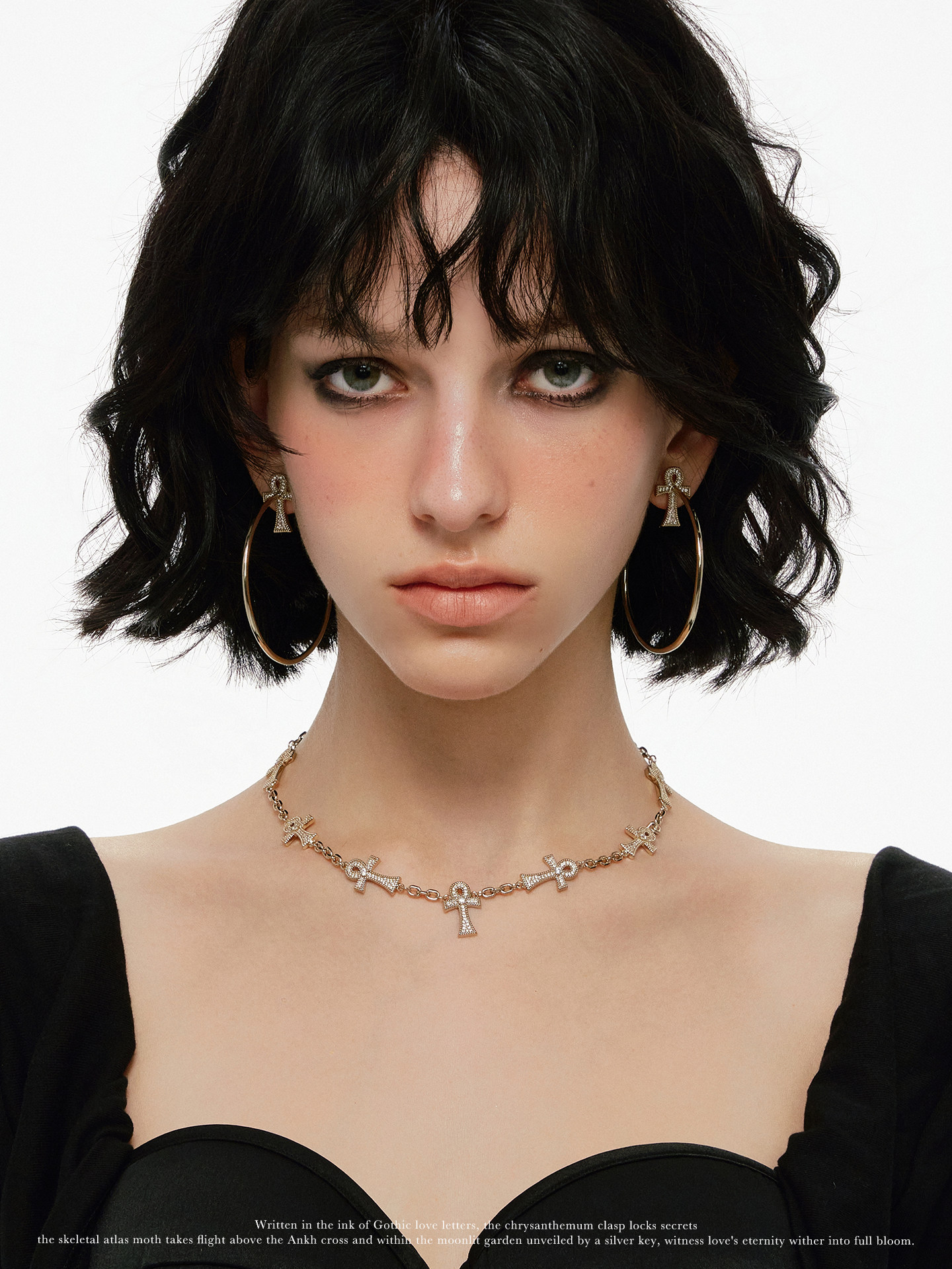 Sumiyaki Full Diamond Ankh Cross Earrings, Slimming and Face-Slimming, Large Hoop Earrings for Women