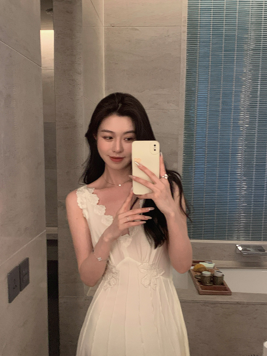 Lazy Zoe Main Character Halo Silk Blend Embroidered Dress V-Neck Embroidered Patchwork Waist-Cinching A-Line Long Dress