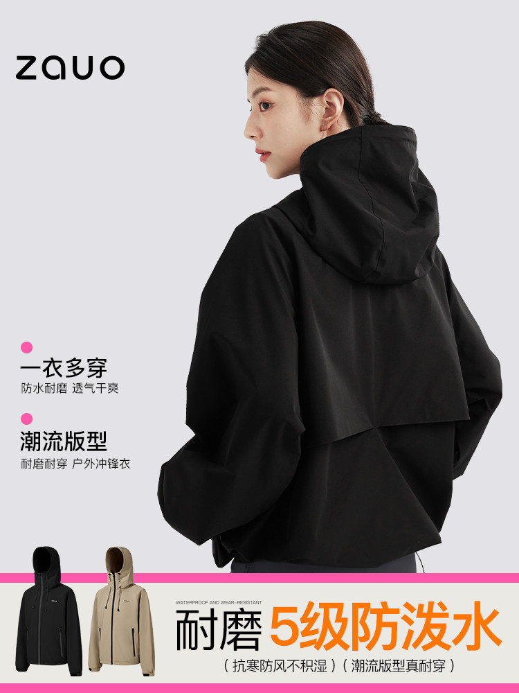 Rarely Alike Double-Breasted Short Trench Coat Jacket Light Khaki/Navy Blue
