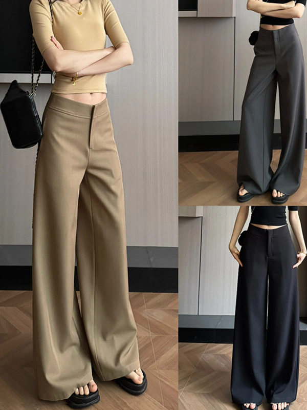 Old Money Style Casual Elegant Suit Wide-Leg Pants for Women, Spring and Summer Versatile Slim Fit, Slimming, Drapey Straight-Leg Flared Long Pants