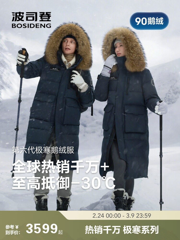 【25 Extreme Cold Long Style 90% Goose Down】Bosideng New Thickened Fur Collar down Jacket for Women and Men, Outdoor Warmth with Hood
