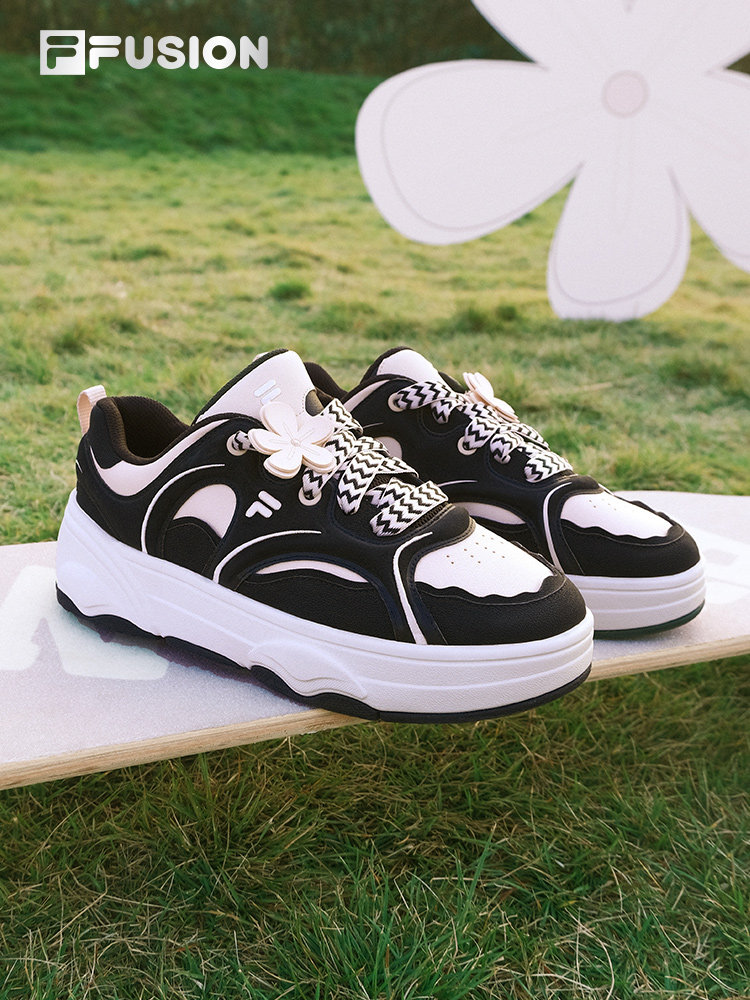 Fila Fusion Trendy Brand Thick-Soled Sneakers for Women, Summer Mesh Breathable Casual Black and Pink Sports Shoes for Women