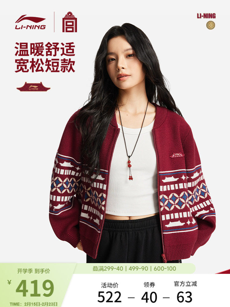 Li-Ning and the Forbidden City Collaboration Sweater for Women, Spring 2026 New Model, New Year Red Casual Knitwear, Year of the Horse Sportswear