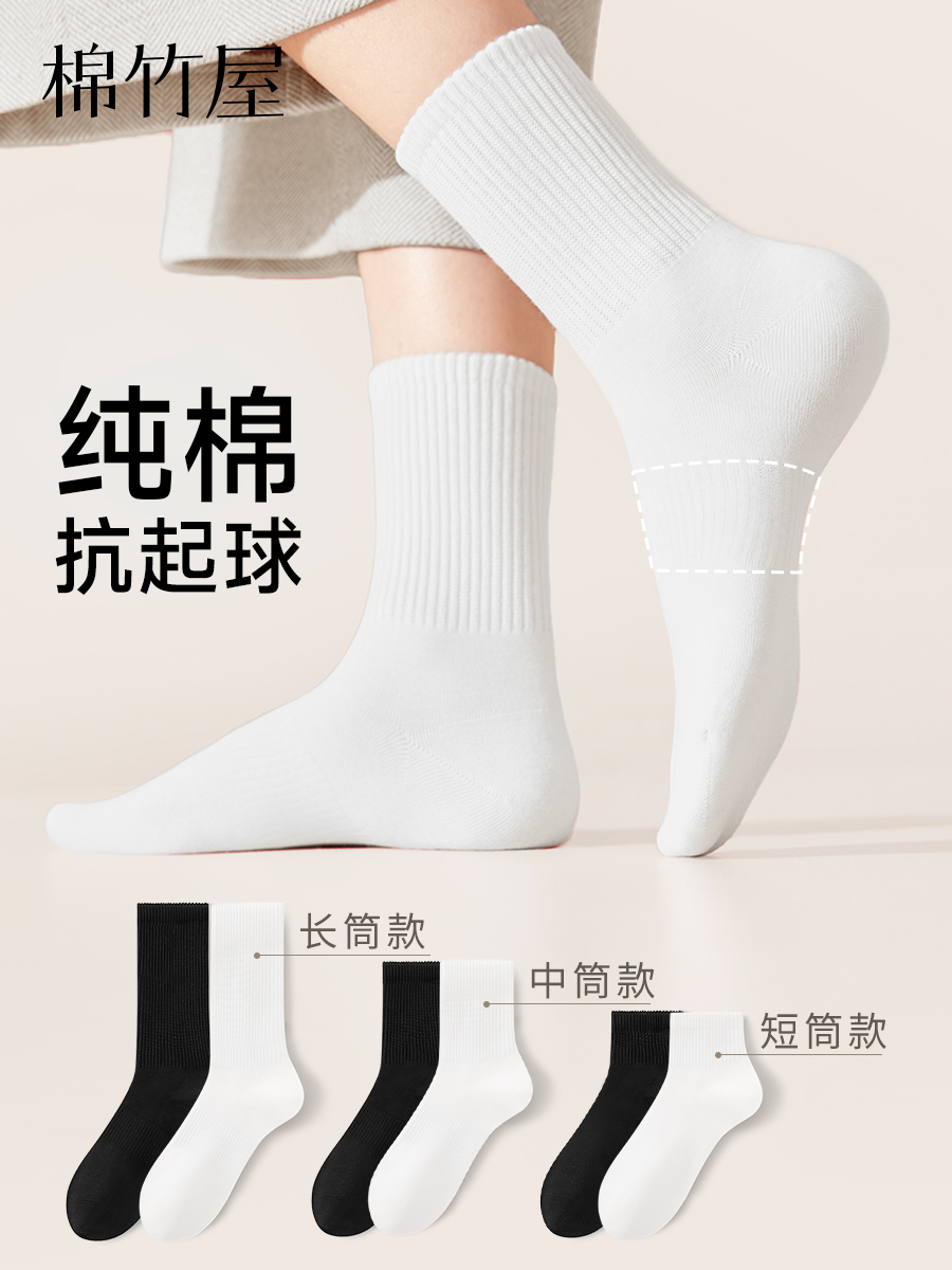 Women's Pure Cotton Mid-Calf Socks for Spring and Autumn, Seamless, Antibacterial, Odor-Resistant, Black and White, Thin Summer Sports Long Socks