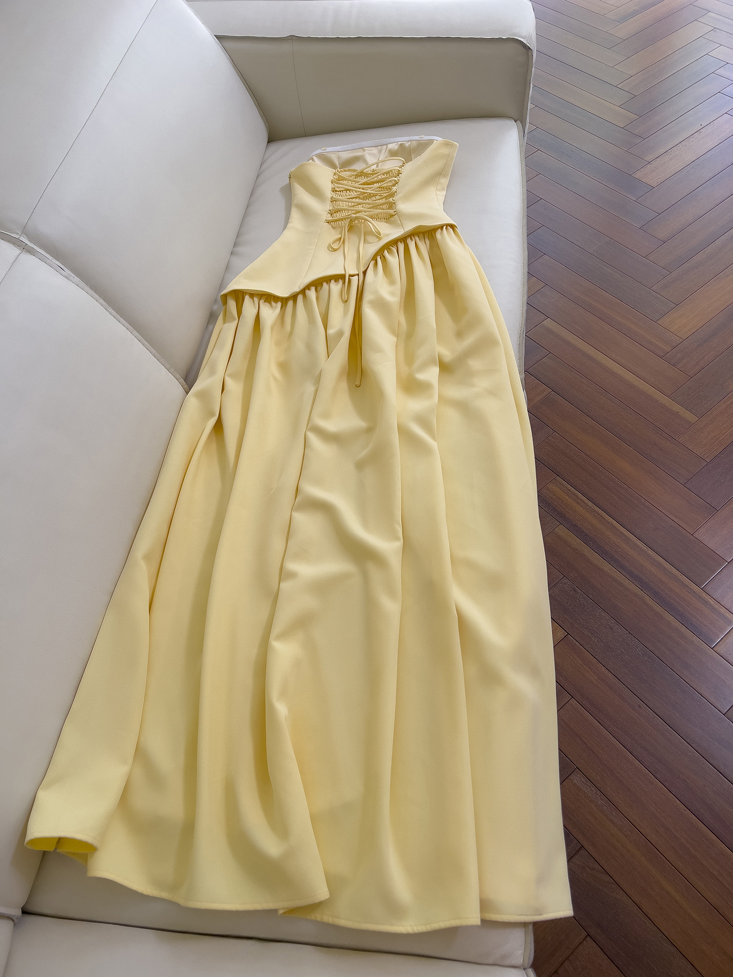 Australian Niche Brand Strapless Tie-Waist Dress, Simple, Elegant, High-End, Yellow Vacation Dress