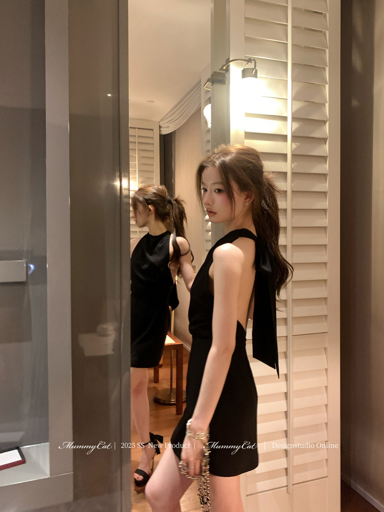 Zhou Bai Zi【Pure Desire Lace Halter Neck Purple Dress】Pure Desire Little Black Dress Date Bodycon Dress Spring Dress