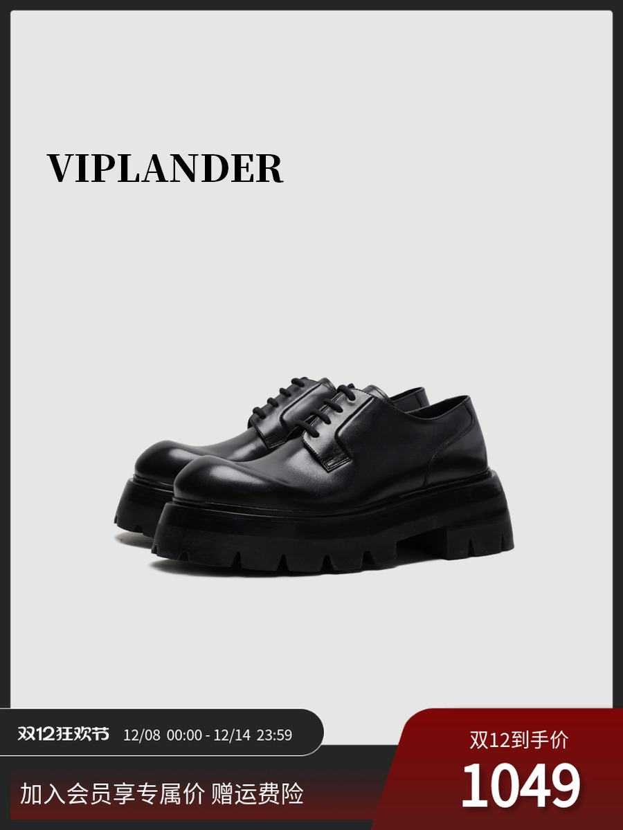 [Same Style as Wu Lei] Viplander New Round-Toe Thick-Soled Height-Increasing Large Leather Shoes Men's Derby Shoes 142701