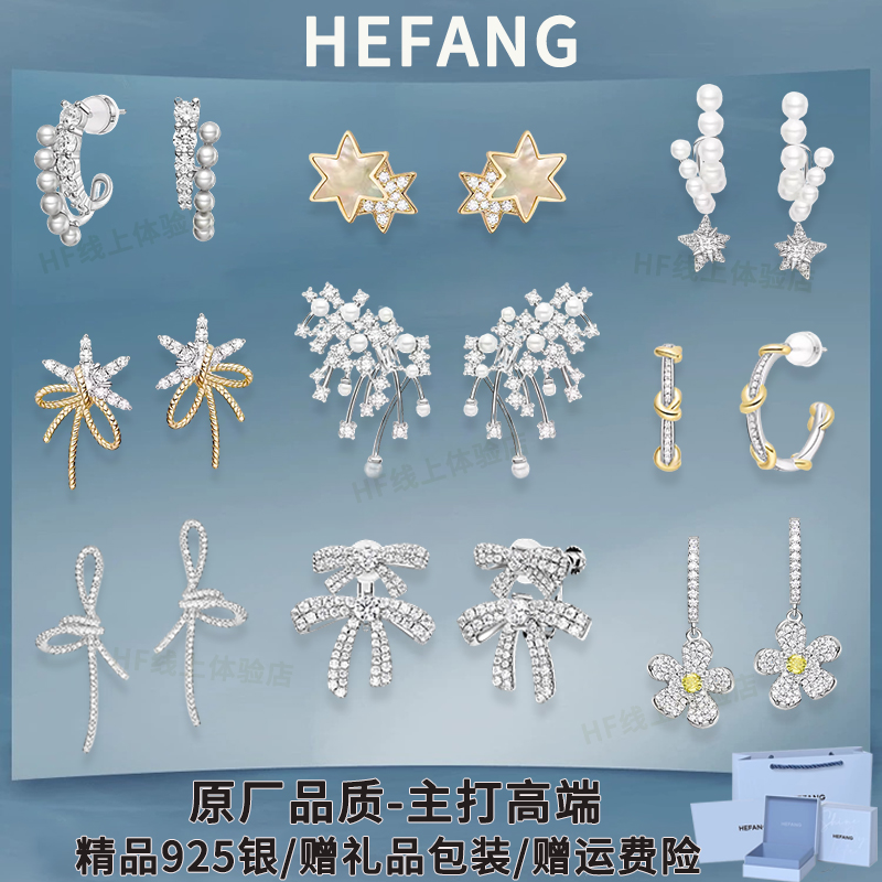 He Fang Brilliant Nebula Earrings 925 Silver Hot-Selling Zhao Jinmai Same Style Hefang Double-Layer Bubble Earrings Ear Clips for Women
