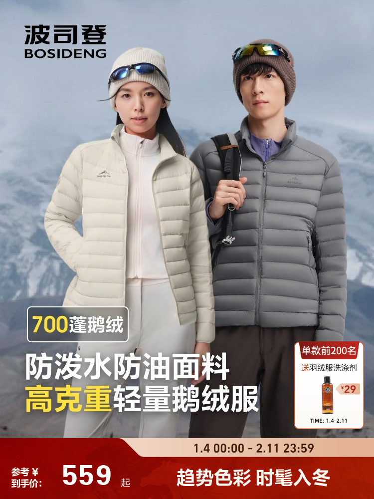 90% Goose down Bosideng 25 Autumn New Style Ribbed Stand Collar down Jacket for Men and Women, Short Windproof Coat with Lightweight Inner Lining