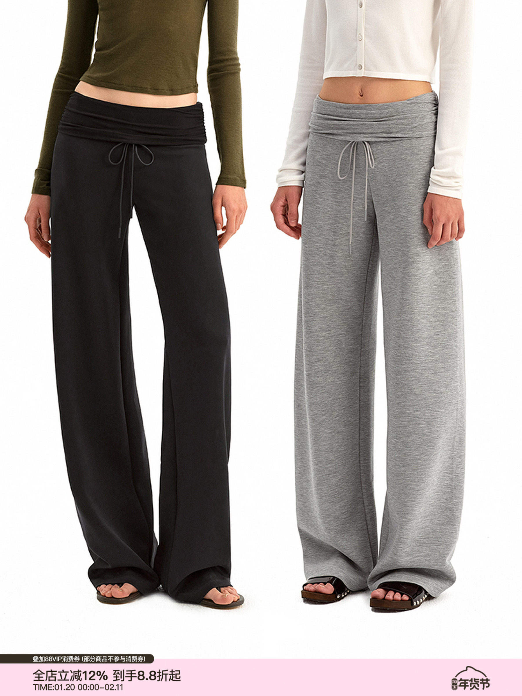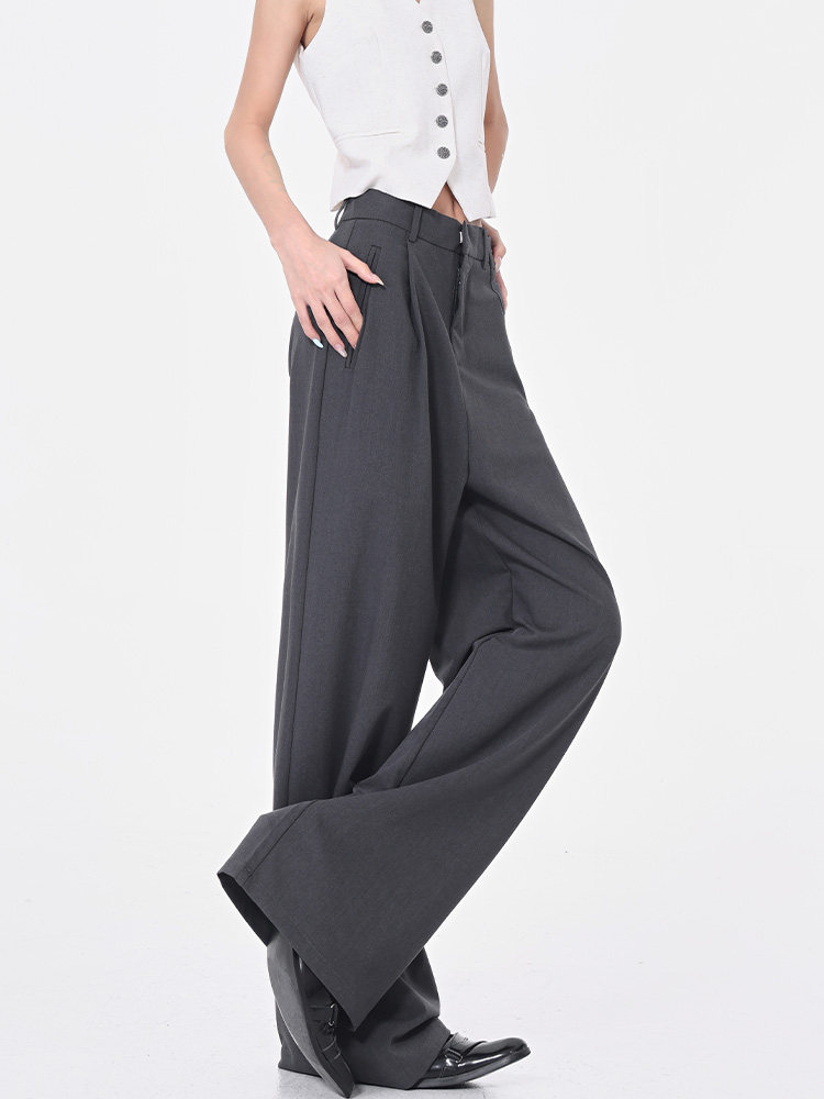 Ken Studio Summer Thin Gray Straight-Leg Suit Pants for Women, High-Waisted Casual Loose Drape Wide-Leg Pants