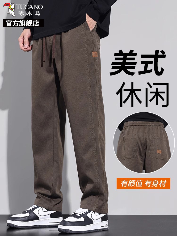 Woodpecker New Autumn and Winter Loose Casual Pants for Men, Fleece-Lined and Thickened Straight-Leg Cargo Pants, Sports Long Pants K