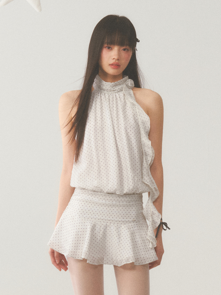 Weekendhub Halter Neck Dress Women's Summer Sleeveless Short Skirt French Sexy Design Elegant Polka Dot Skirt