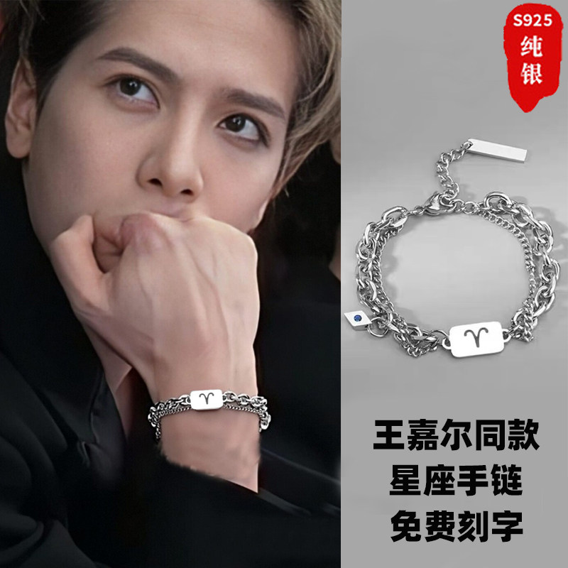 Sterling Silver Bracelet for Men, High-End Trendy Twelve Zodiac Signs Men's Jewelry, Versatile Couple Engraving Gift for Boyfriend