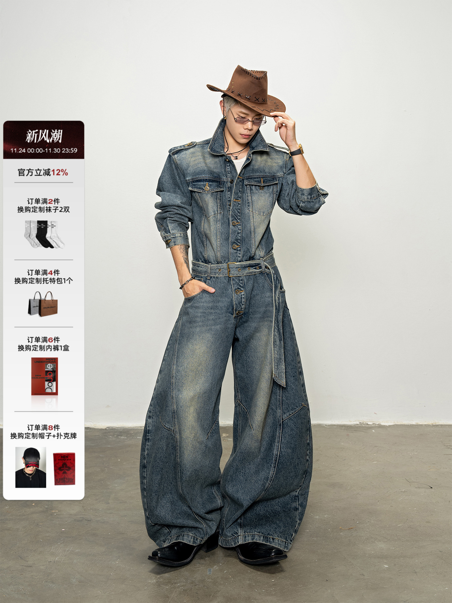 Military Green Loose Wide-Leg Cargo Jeans for Women, New Autumn and Winter Retro High-Waisted Slimming Drapey Versatile Floor-Length Pants