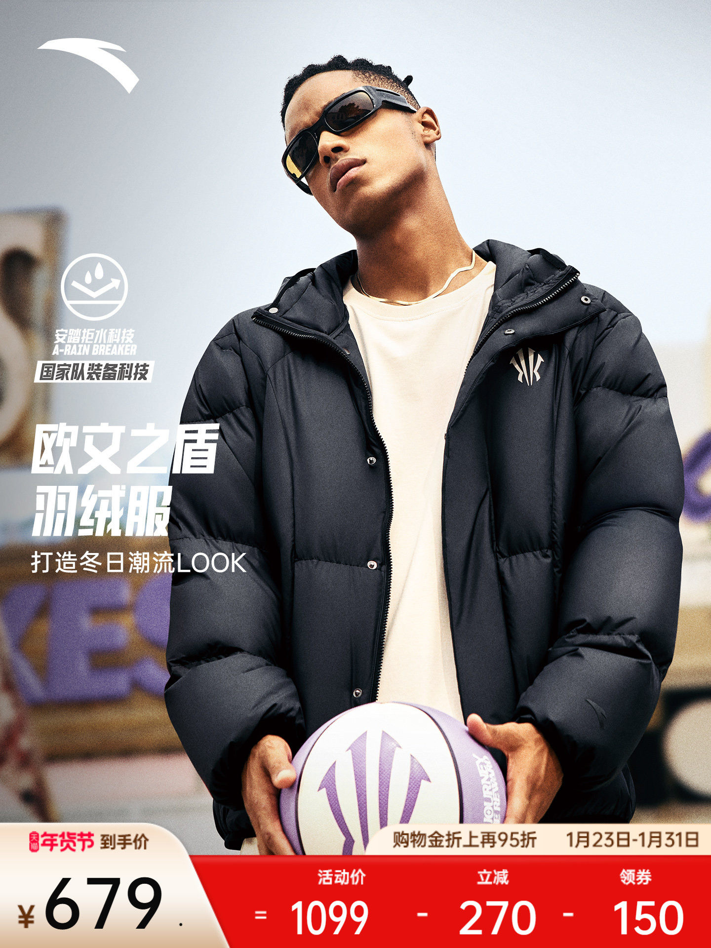 [Same Style as Lin Xiaojun] Anta Six-Degree Core Ice Armor down Jacket | Short Cotton Jacket for Men 152547943N