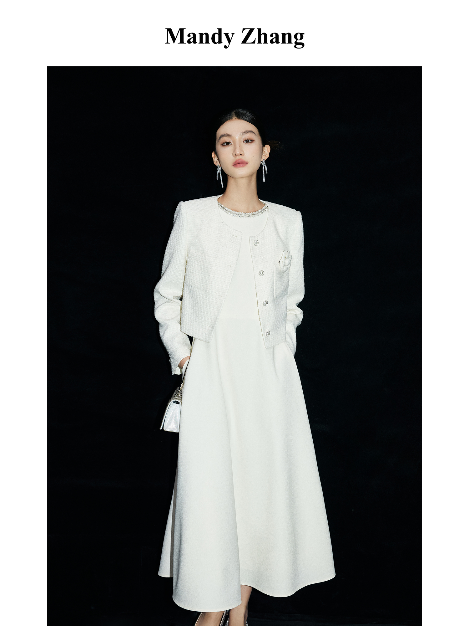 Mandyzhang White Moonlight Floral Gauze Short Jacket for Women, Spring Camellia Elegant Top